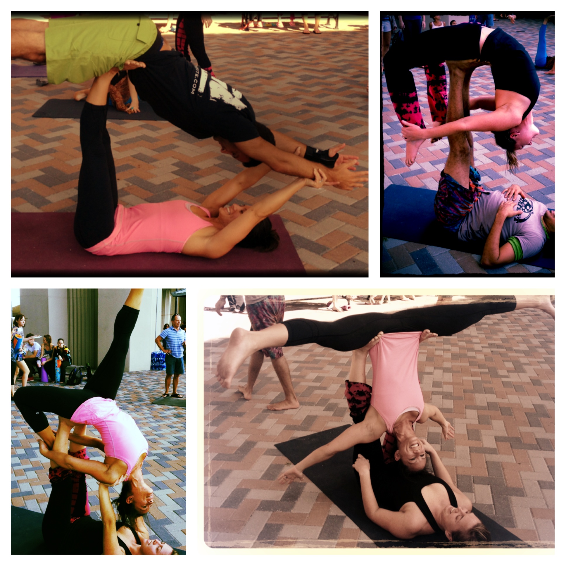 Last weekend I attended the 2nd Annual Yoga Fest at the Riverside Arts Market. What a BLAST! Last year, I participated with a huge crowd of yogi’s for a yoga practice that included 108 sun salutations. This year most of my energy and attention was focused on the acro-yoga workshop, which was being put on by Ananda Kula.
