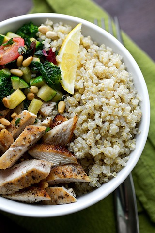 - Quinoa bowl with beans, avocado, and fresh salsa