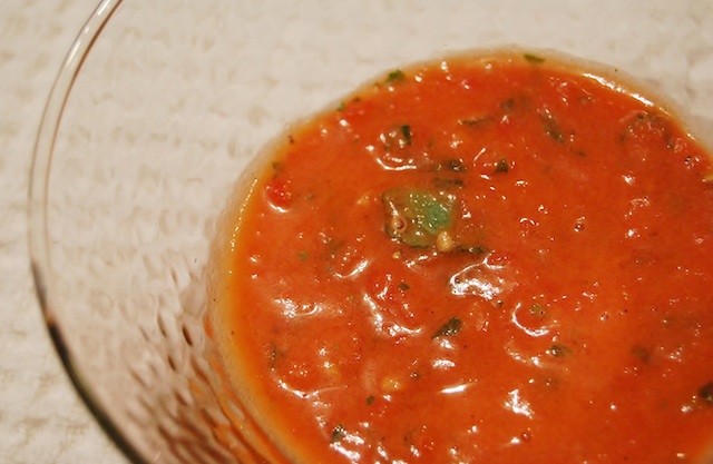 Once all blended together, the vinaigrette has a beautiful red color and a fresh, amazing flavor.