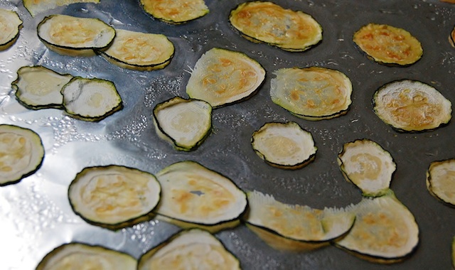 - Layer the zucchini slices in a single layer on the foil. Their edges can be touching, but do not overlap the zucchini.